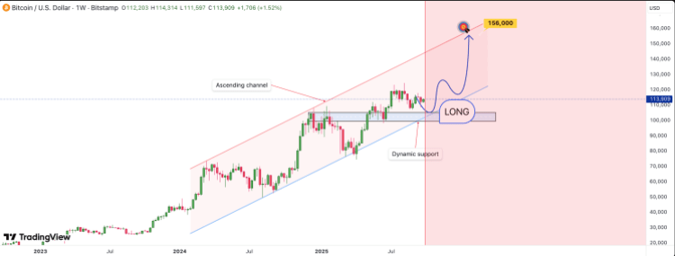 对于看涨情景,比特币价格确实需要保持上限通道的另一端将继续上涨。一旦多头占据主导地位,价格可能会继续上涨,分析师预测涨幅将超过30%。如果涨势结束,比特币价格将达到156,000美元的高点。