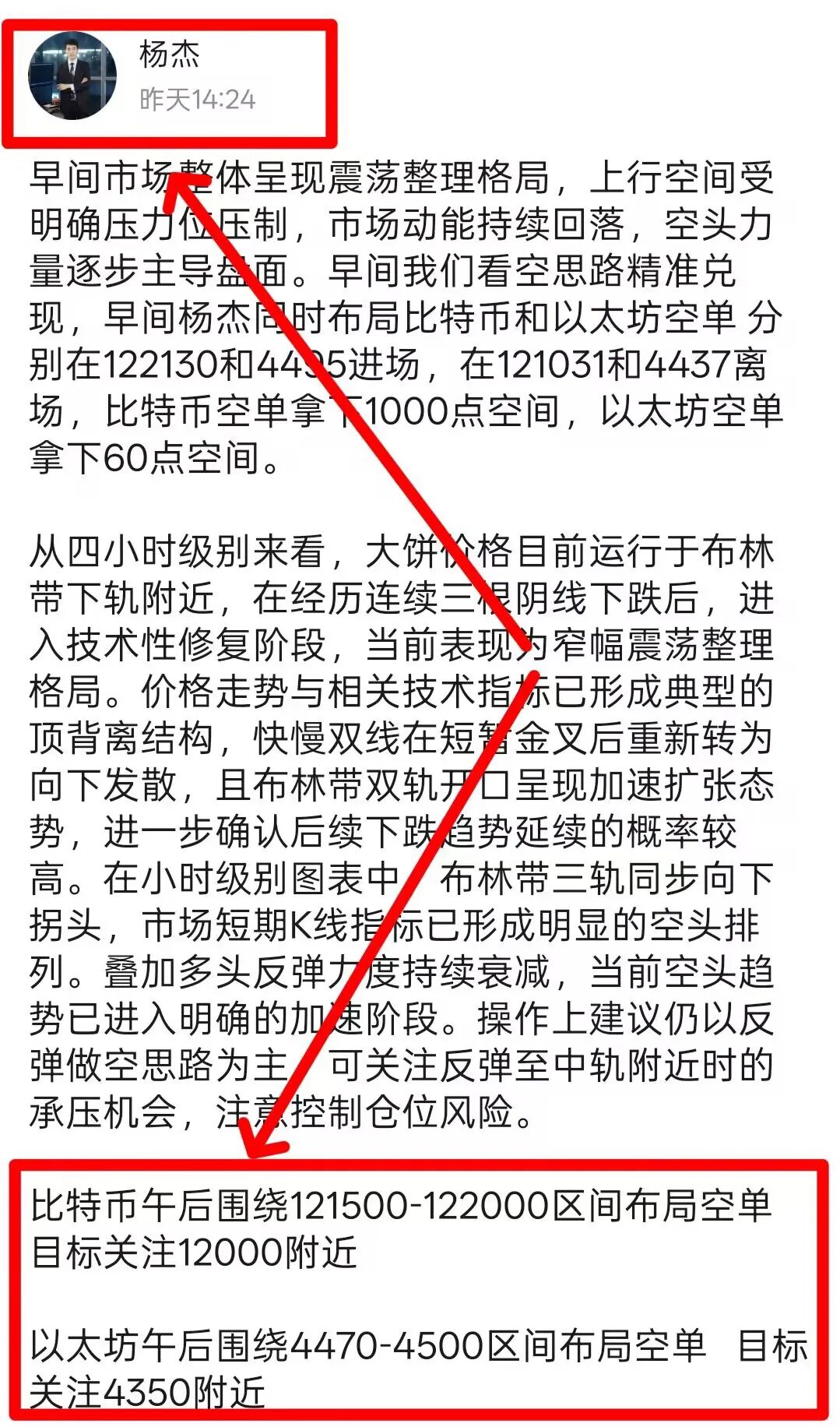 比特币早间围绕123500-124000区间布局空单 目标关注122000