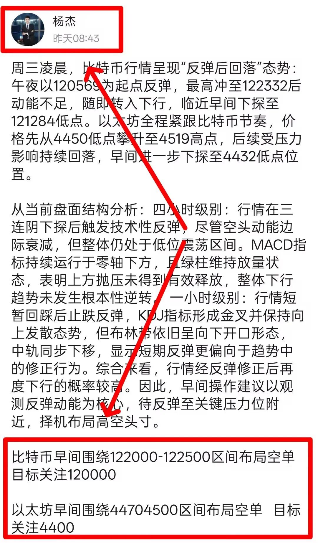 复盘午夜时段比特币行情呈现“反弹后回落”态势:午夜比特币以122060为起点反弹,最高冲至124170后动能不足,随即转入下行,临近早间下探至123243低点。以太坊全程紧跟比特币节奏,价格先从4436低点攀升至4556高点,后续受压力影响持续回落,早间进一步下探至4520低点位置。