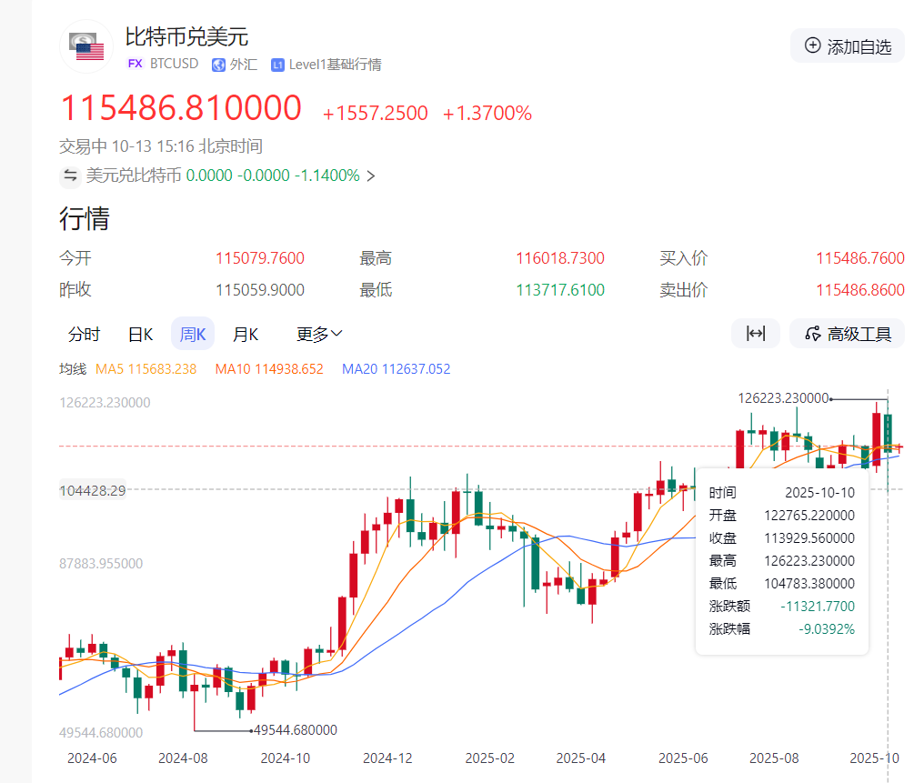 另外一点除了黄金,比特币也是金融机构的另外一个避险选择。再加上比特币2024年年初第四次减半,价格更是刷新新高。在小诺打算编辑本篇文章的时候,比特币价格是突破历史最高点达到了125000美金。但是就在发稿前,比特币一夜之间又暴跌到104783美元,直降两万美金,导致多少合约玩家一夜爆仓。随后通过两天的大盘调整,比特币价格回升至小诺发稿时价格为114700美金,回调1万美金。比特币到今天的价格和体量已经基本和国际股市,尤其是美股的波动有直接的关系了,早已经不是10年前的独树一帜了。所以网友现在无论在哪个媒体平台上只要刷到跟比特币涨幅的消息,基本都能看到和美联储加息降息、美国失业率指数、非农数据挂上钩。原因很简单,10年前的比特币,在国际上还没有让大部分资本方认可,很多机构也不会认可比特币的价值。即便承认价值,也不会轻易选择数字资产作为规避风险或者投资的工具。但是时光荏苒这十年金融界的变化很大,金融机构的资金早就在美股、黄金、比特币之间来回穿梭,导致比特币的价格波动和美股,甚至和外汇市场间接挂上了钩。但是以小诺的观点来看比特币因为其数字货币特殊的减产机制和“灰产”特性,它的行情无论遭遇什么样的波动,即便是一天内腰斩的行情,也会逐渐涨回来,比特币的价格早晚要突破一百万。只要突破了百万,那么一百几十万的价格,网友们都会看的到。