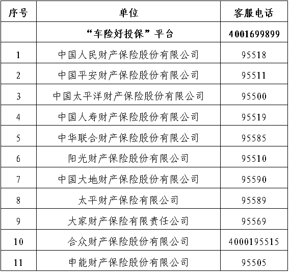 “车险好投保”平台和在平台增设投保入口的首批11家保险公司客服电话如下: