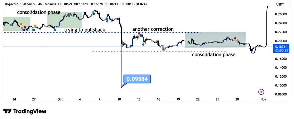 DOGE 一直在横盘整理,下方买盘在入场。如果支撑能持续稳住,或许为本月晚些时候冲破 0.22–0.26 美元提供了足够空间。