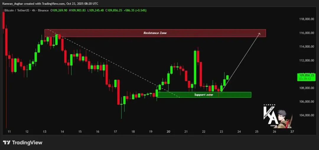 与 Brandt 的谨慎态度相反,其他分析师也变得乐观起来。市场策略师 Kamran Asghar 也对 X 持乐观态度,他指出“BTC 守住支撑位,将开启重新测试 11.6 万美元的道路。”