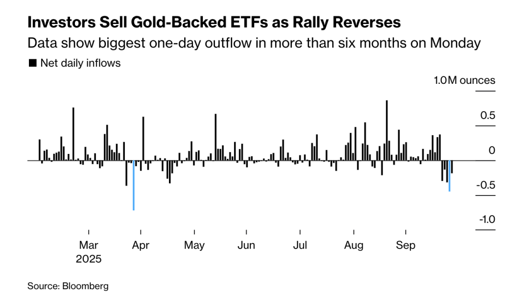 其中包括周一发生的六个多月以来最大的单日赎回,当时投资者赎回了 44.8 万盎司黄金。