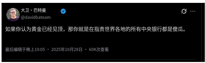 金属交易员大卫·贝特曼认为,尽管目前金价正在回调,但其牛市行情的基本面依然完好无损。