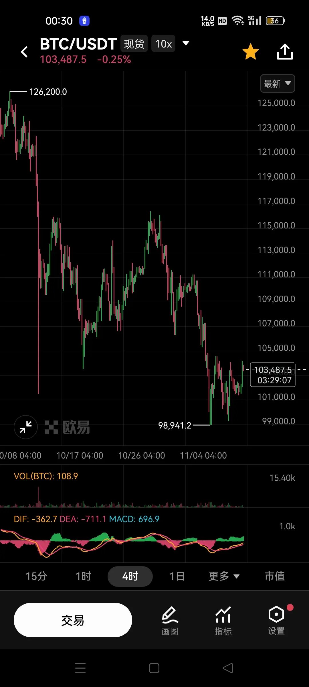 比特币(BTC)11月10日行情分析:根据技术指标分析,比特币价格目前在比特币103400点附近波动,4小时行情呈现短期做空趋势。