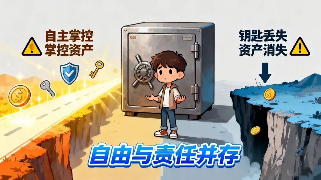 意思很明确:只有当你亲自保管那组独一无二的 “助记词 / 私钥”,钱包里的数字资产才真正属于你。