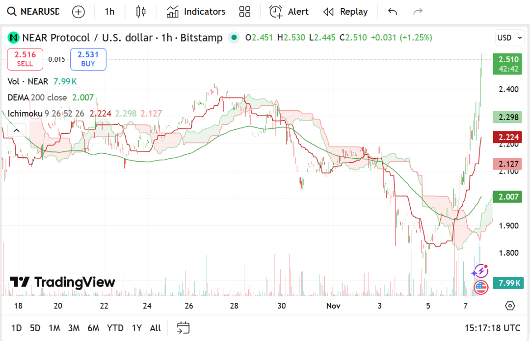 Near 一下子涨了 19.15%,现在价格 2.36 ,市值有 30.2 亿。交易量更夸张,涨了 228.81%,到了 8.0857 亿。