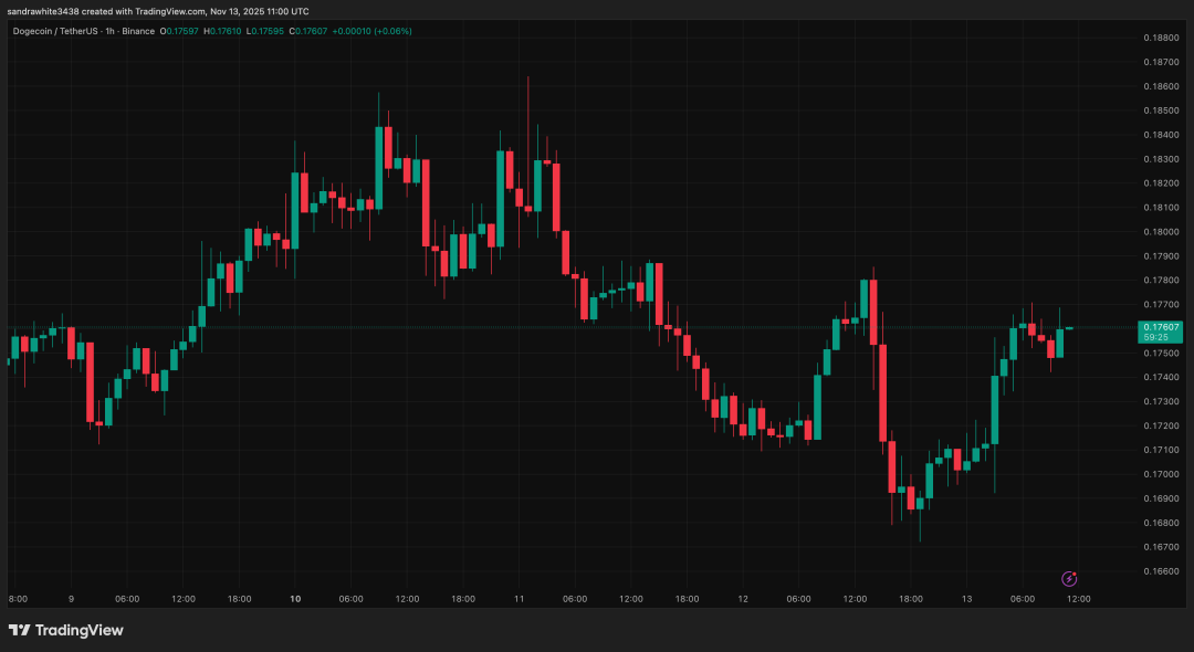 过去几天,狗狗币价格一直在努力从持续数周、几乎波及整个加密行业的下跌趋势中恢复。此前,狗狗币在月初经历了一段明显的下跌行情,但最近走势开始逐渐转强。在跌破 0.16 美元区域后,买盘力量开始重新进入市场,形成了一系列更高的低点,把价格重新推回到 0.17 美元至 0.186 美元之间的窄幅区间。