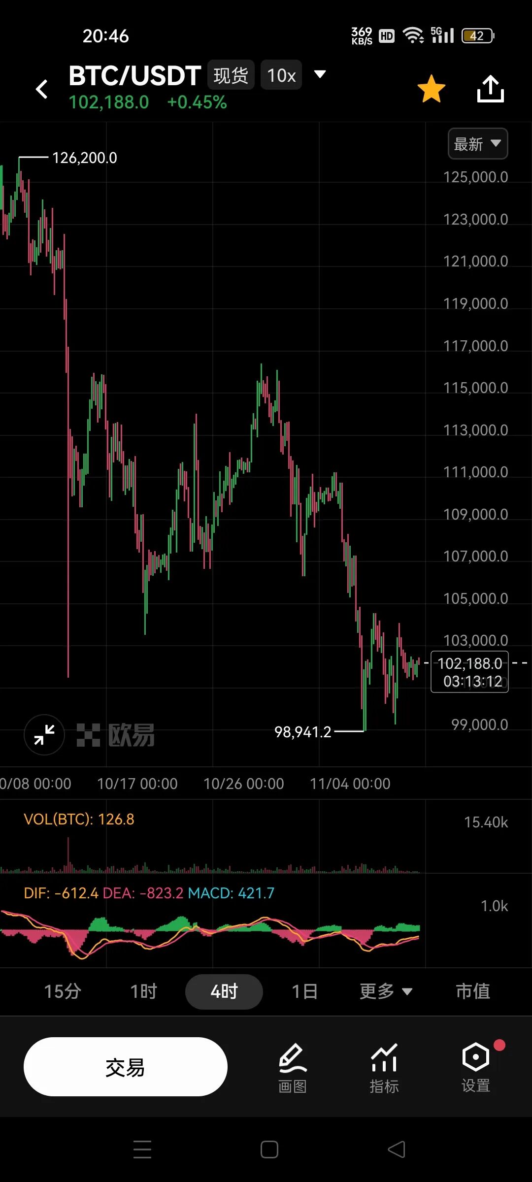 比特币(BTC)11月09日行情分析:根据技术指标分析,比特币价格目前在比特币102100点附近波动,4小时行情呈现短期做空趋势。