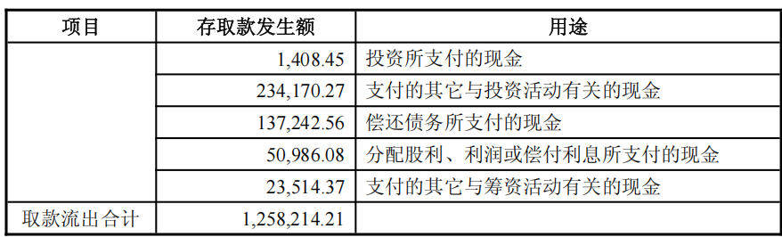 存取款发生额及相应用途如下: