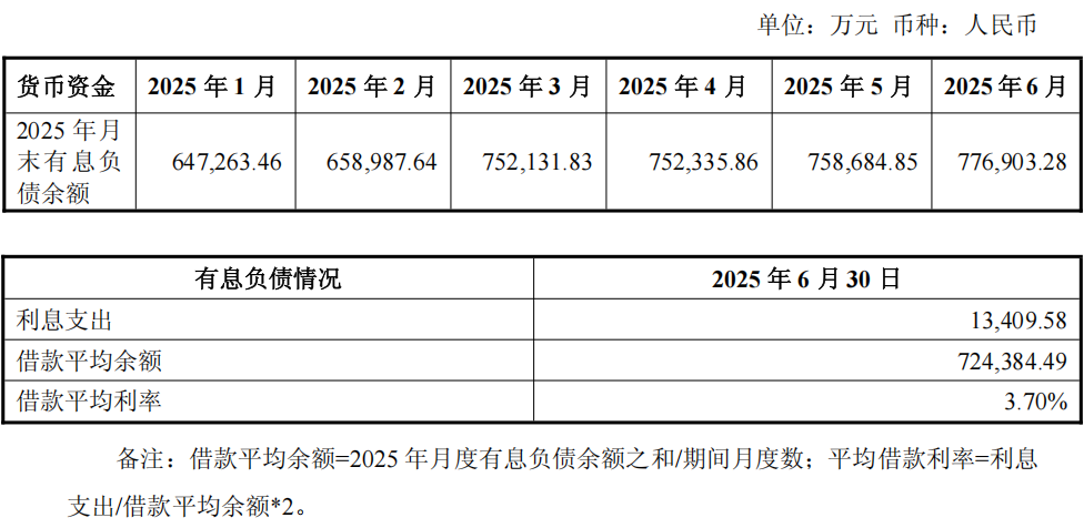 2025年6月30日,公司及子公司主要有息负债情况如下: