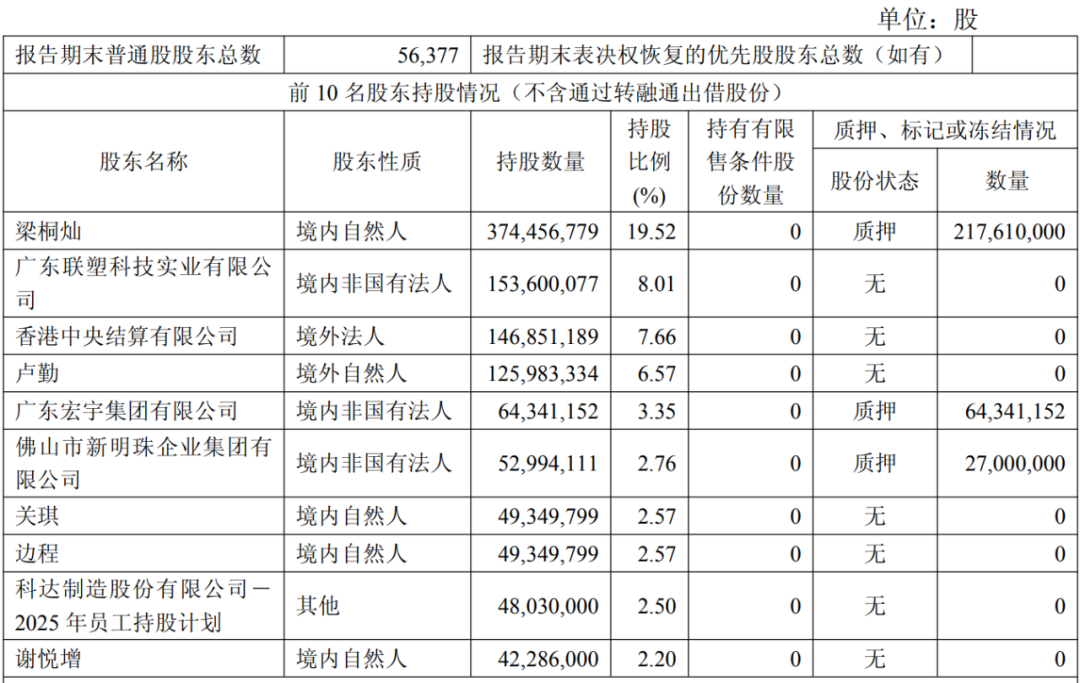 根据2025年第三季度报告,科达股份前十大股东情况如下: