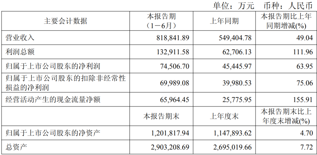 2025年上半年,公司实现营业收入81.88亿元,同比增长49.04%,海外收入占比超65%;实现归母净利润7.45亿元,同比增长63.95%。