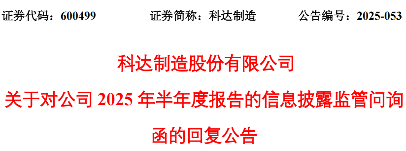近期,上市公司科达制造(600499)披露了《关于对公司2025年半年度报告的信息披露监管问询函的回复公告》,交易所对上市公司“存贷双高”予以问询。