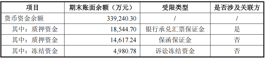 公司货币资金中银行承兑汇票保证金为18,544.70万元,保函保证金为14,617.24万元,冻结资金为4,980.78万元。因公司与陶瓷研究院的交易结算模式,上述银行承兑汇票保证金中,收票人为陶瓷研究院的期末账面余额为150.66万元,除此之外,公司货币资金不存在用于为关联方担保等支取受限情形。