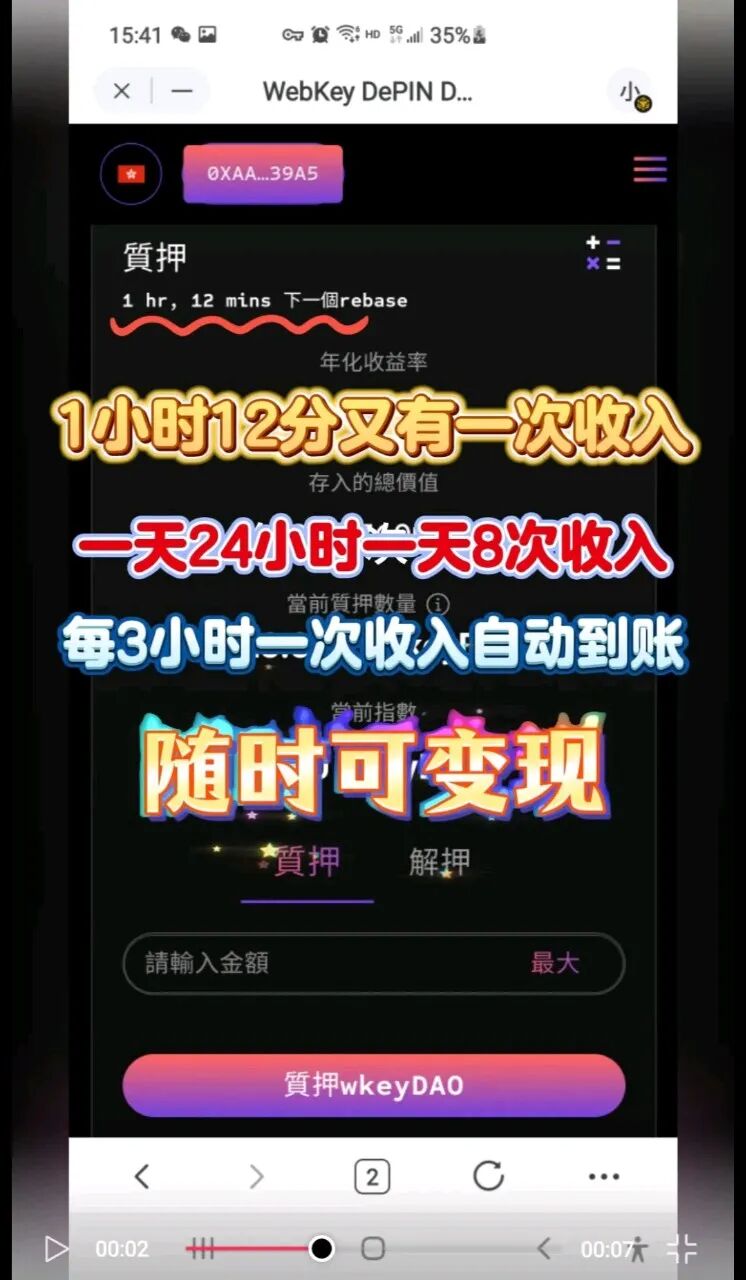 24年9月到25年1月,我在币圈踩了俩坑,具体名字就不提了,说多了都是泪!好在2月份转运,同时遇上了mc公链和webkey多链手机。当时wkeydao要60u,价格有点高,我没看懂也没敢冲,反观mc公链门槛低,动态收益100%,来钱快,我就all in了mc,干了俩月,实实在在拿到了钱。