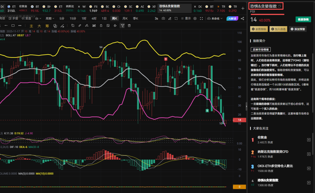 注意今日的恐慌指数来到了极度恐慌14。。。