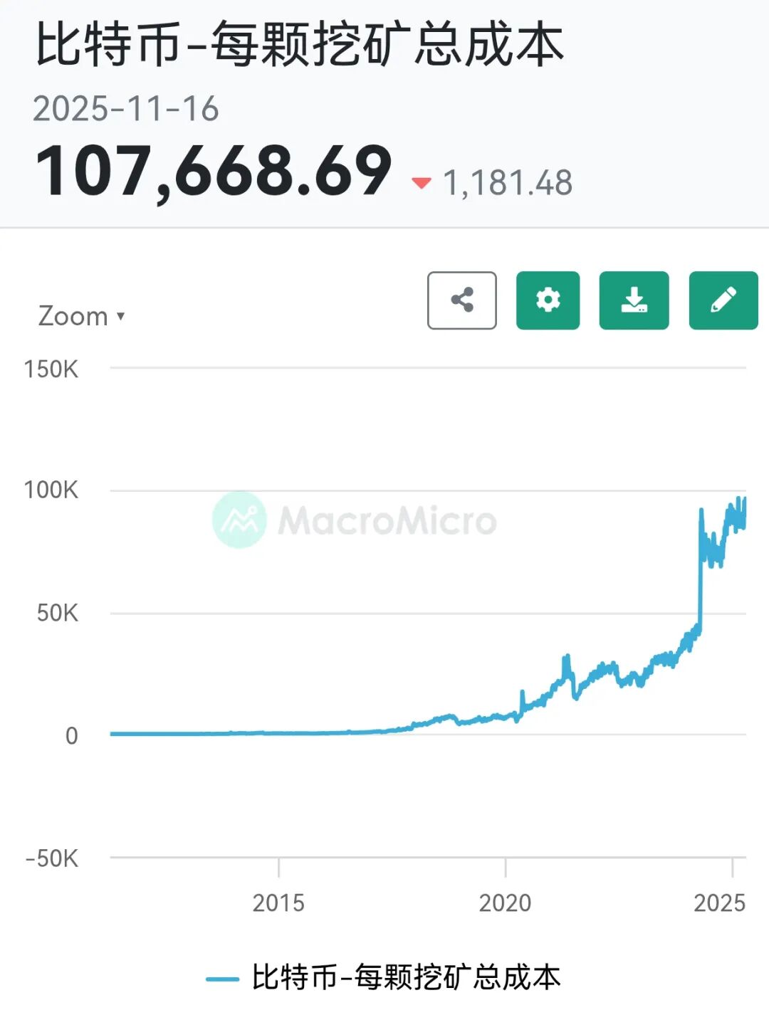 支撑比特币价格的,主要是其背后2100万枚总数。另外,挖矿成本也越来越高,最新的数据显示,比特币挖矿成本已经突破10万美元。