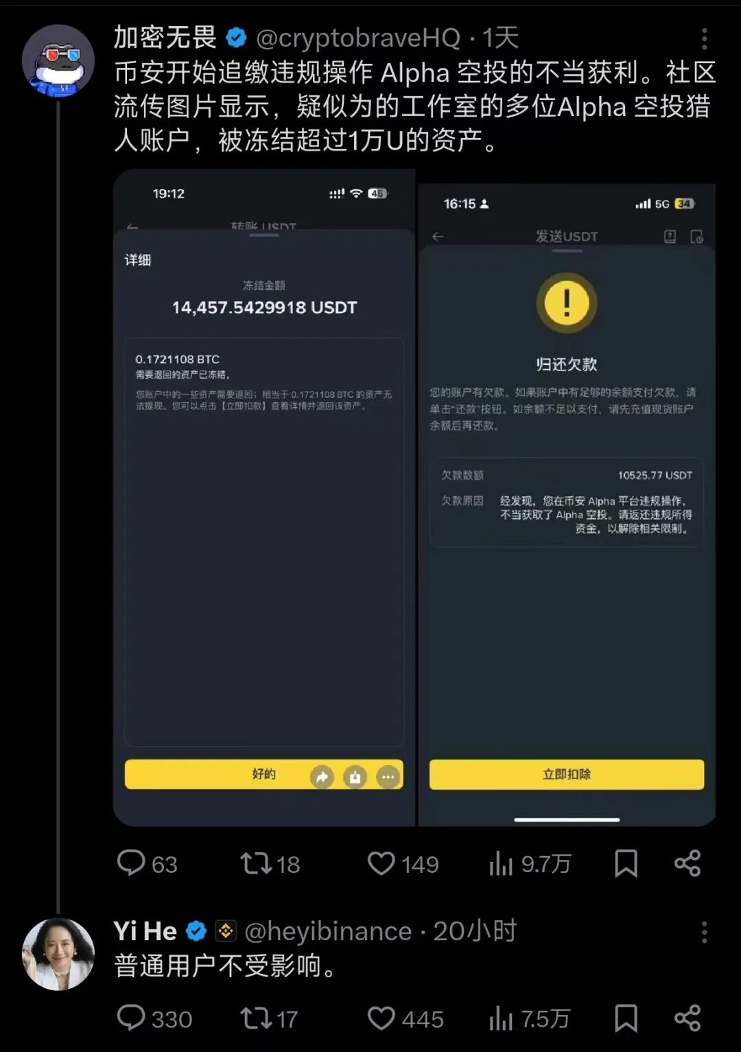 币安联合创始人何一明确表示,此次行动针对的是有组织的违规套利行为,普通用户不会受到影响。