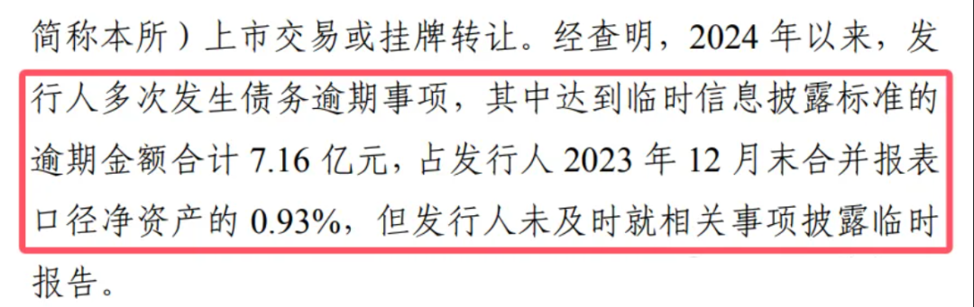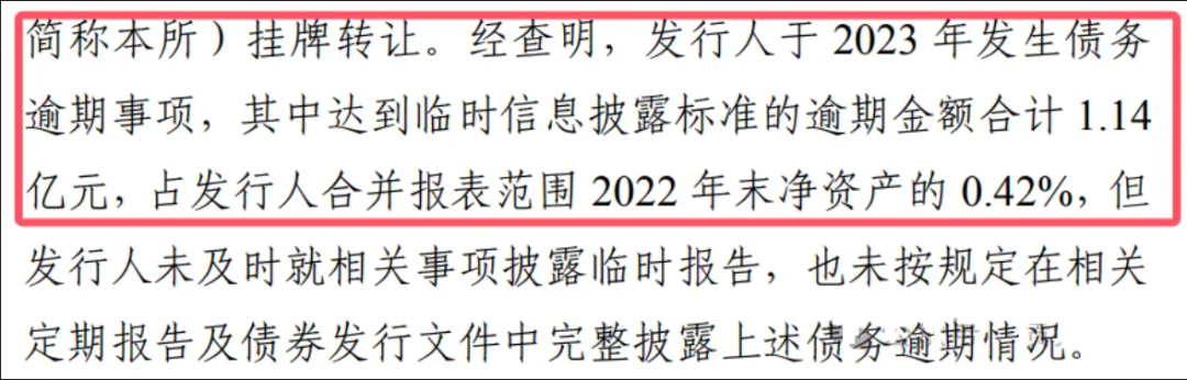 2、第二家发生债务逾期的发行人为区县级城投公司(主体信用等级AA,存量境内债券41.50亿元),在2023年至2024年发生了1.39亿元的债务逾期事项。经公开信息查询,该城投公司最近一年有5条限制高消费记录,而且被列入上海票据交易所公布的持续逾期名单内。