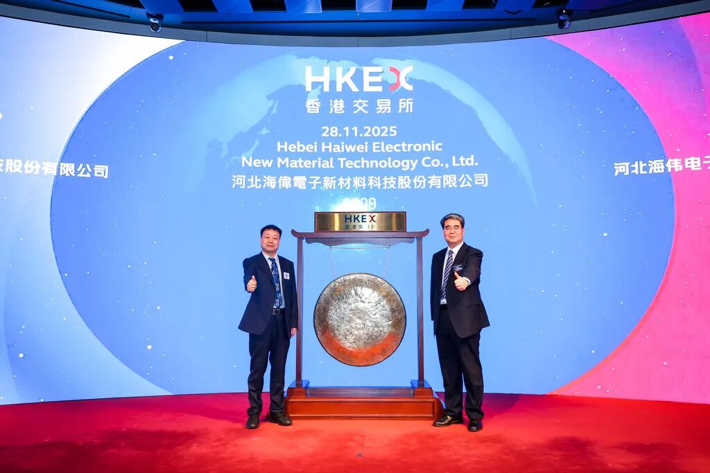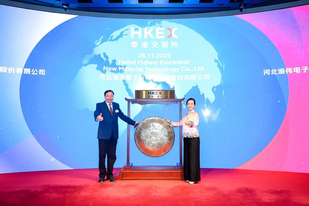 河北日报客户端讯(记者王巍)11月28日,河北海伟电子新材料科技股份有限公司在香港联合交易所(以下简称“港交所”)上市(证券简称:海伟股份;股票代码:09609.HK),本次公开发行股票3545.6万股,发行价格为14.28港元/股,募集资金5.06亿港元,主要用于扩大产能、新型薄膜材料研发及产业链整合。这是记者从河北省委金融办获悉的。