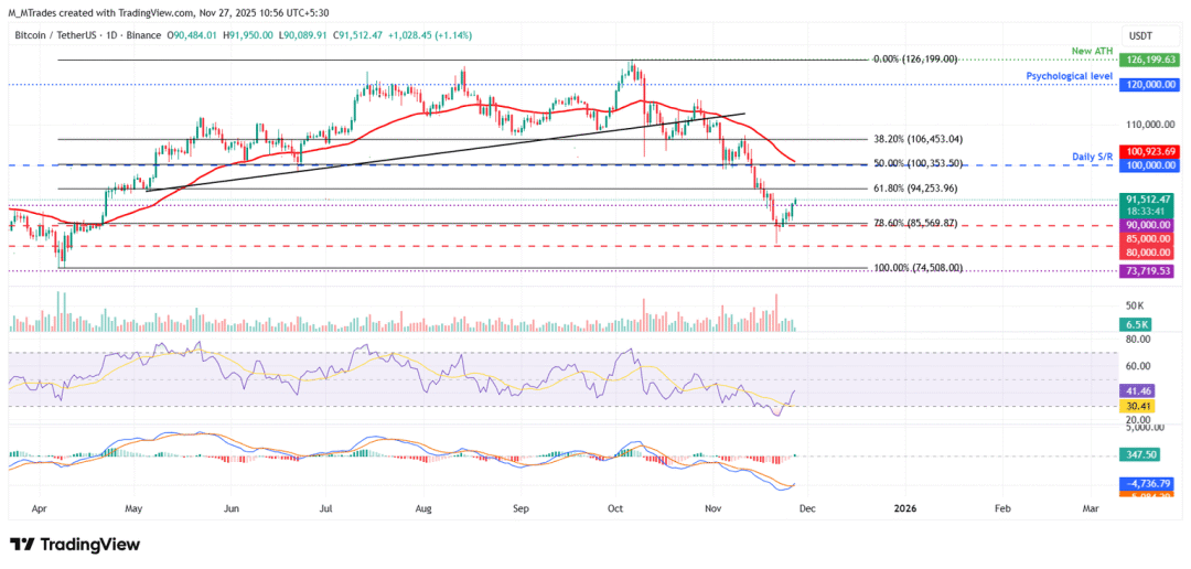 比特币价格上周比特币在 8 万美元的关键心理关口附近获得支撑,并在周末小幅反弹。比特币在月初继续反弹。本星期,周三收盘价超过 9 万美元。截至周四发稿时,比特币价格继续走高,高于 91,500 美元。