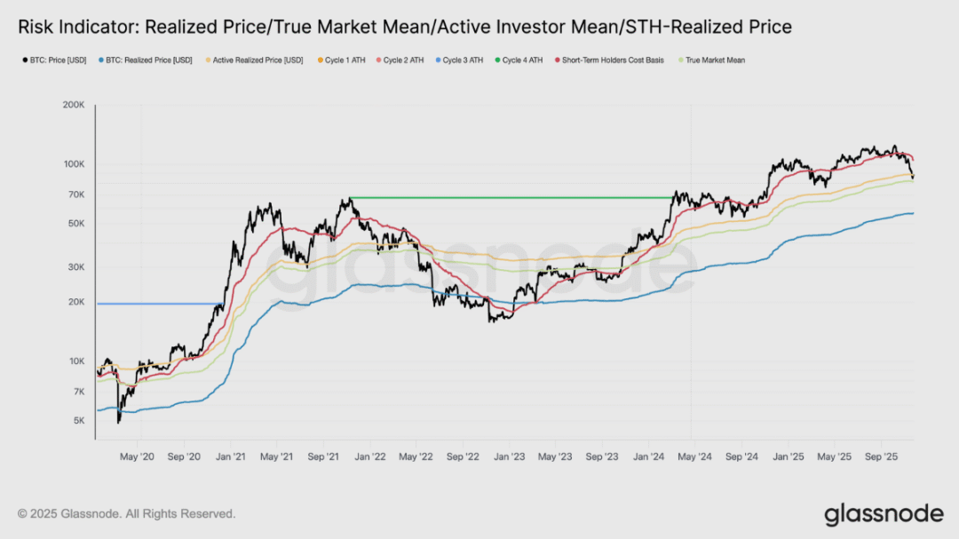 如此巨大的亏损主导地位证实了流动性已经枯竭,尤其是在2025年第二季度至第三季度需求大幅吸收之后,因为长期持有者增加了支出。如果这一比率持续低迷,市场状况可能会开始重现2022年第一季度的疲软态势,从而增加跌破81,000美元真实市场均值的风险。