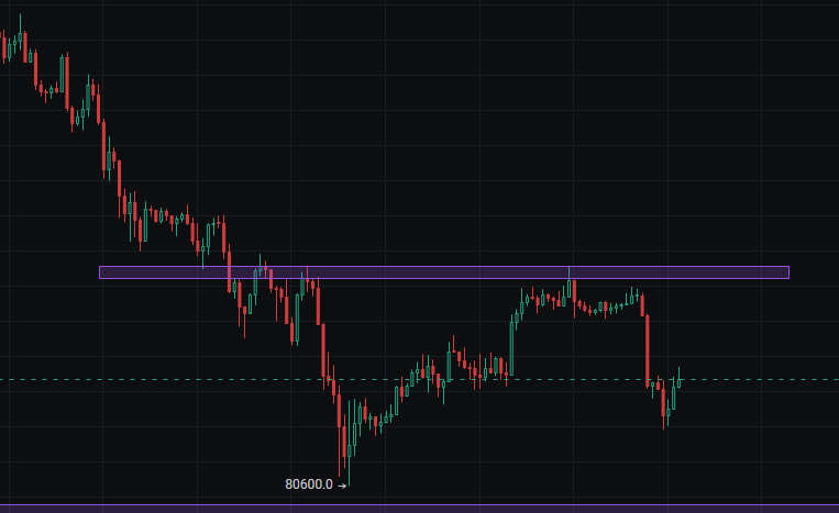 小级别因为巨大的抛售导致存在下跌缺口,这个缺口补一下会更好的下跌,这个缺口在88000-90000这个区间,当然市场也可能不去回补继续延续趋势,不过个人还是认为补足一下再延续会更好跌一些,今日白天预计在区间87500-84500震荡,目前价格没有太好的交易机会。