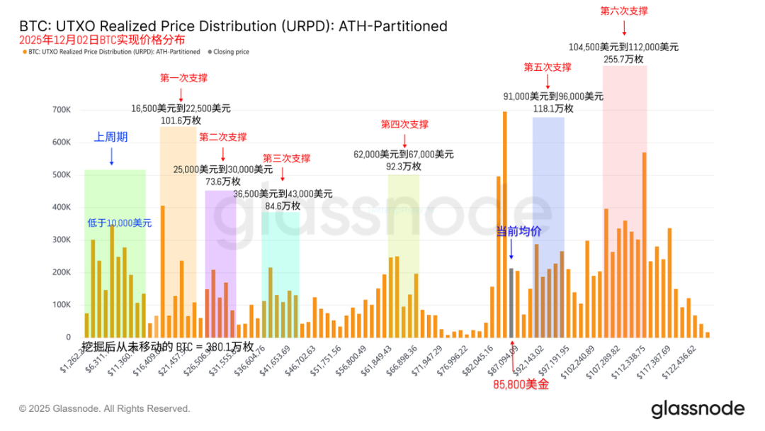 不过从筹码结构来看,还算是稳定,并没有出现大量亏损投资者换手的迹象,尤其是持仓成本在 10万 美元以上的投资者,现在仍然是近期持仓最多的区间,并没有因为价格的下跌而出现崩溃,