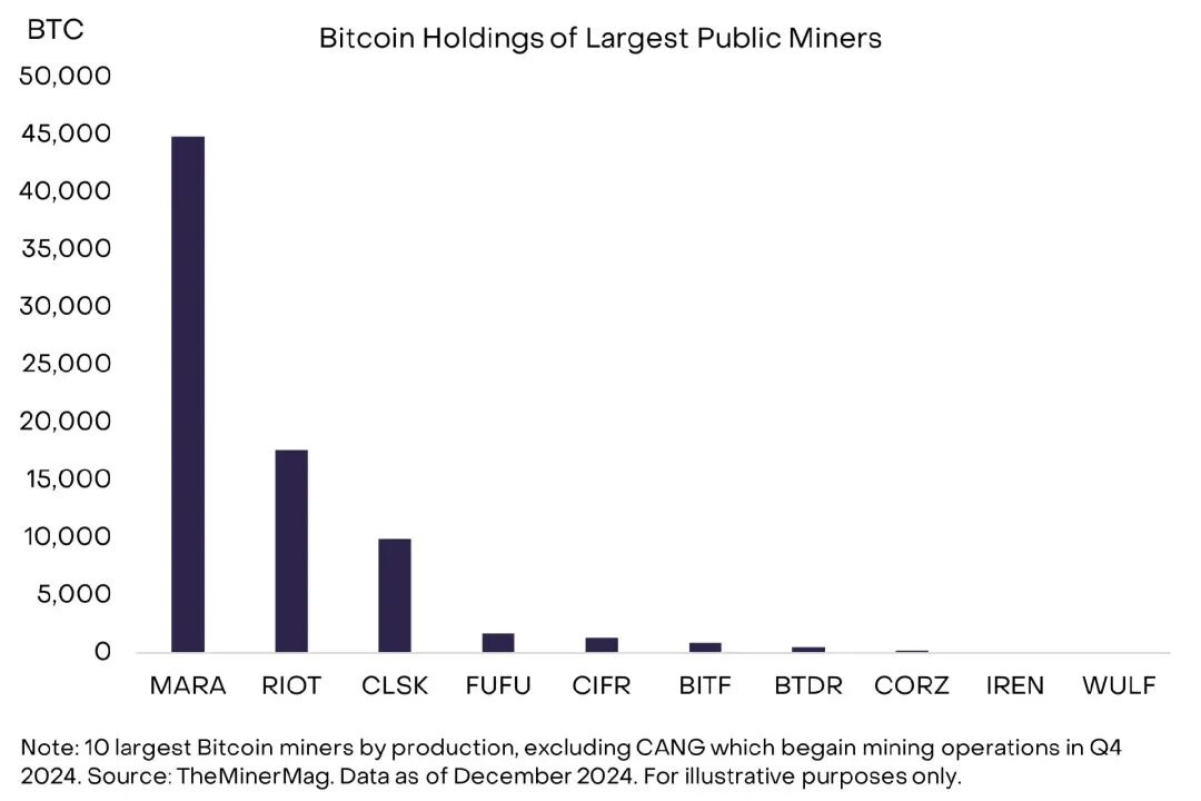 投资公开上市的比特币矿企,能够从区块产出中获取收益,并且随着时间推移,还有望从不断增长的网络交易费用中获得收入增长。实际上,大多数上市的比特币矿企都采用多样化的商业模式,许多企业会在资产负债表上持有挖到的比特币,甚至在公开市场购买比特币。当前,比特币矿企也已开始涉足人工智能和高性能计算的数据中心运营,实现业务多元化。