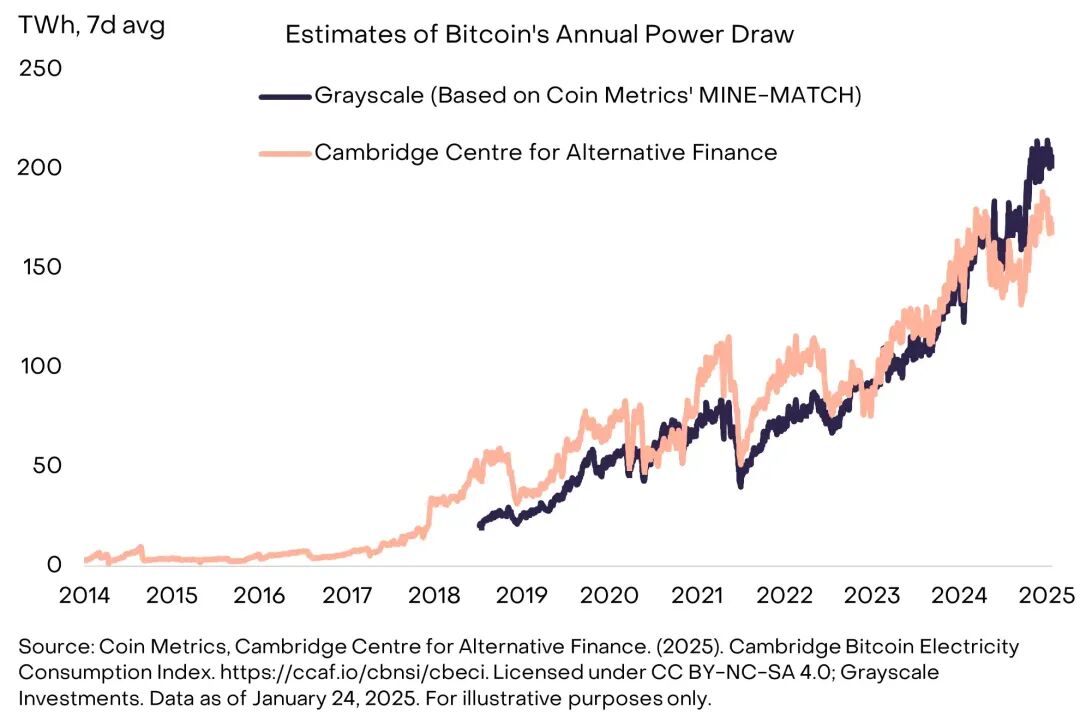 未来几年,技术应用的增长将对电力产生巨大需求,来自数字资产、人工智能及其他行业皆是如此。Grayscale 认为,比特币有助于全球电力基础设施的健康运行,并且与许多其他行业相比,比特币在加速向可再生能源转型方面具有独特的优势
