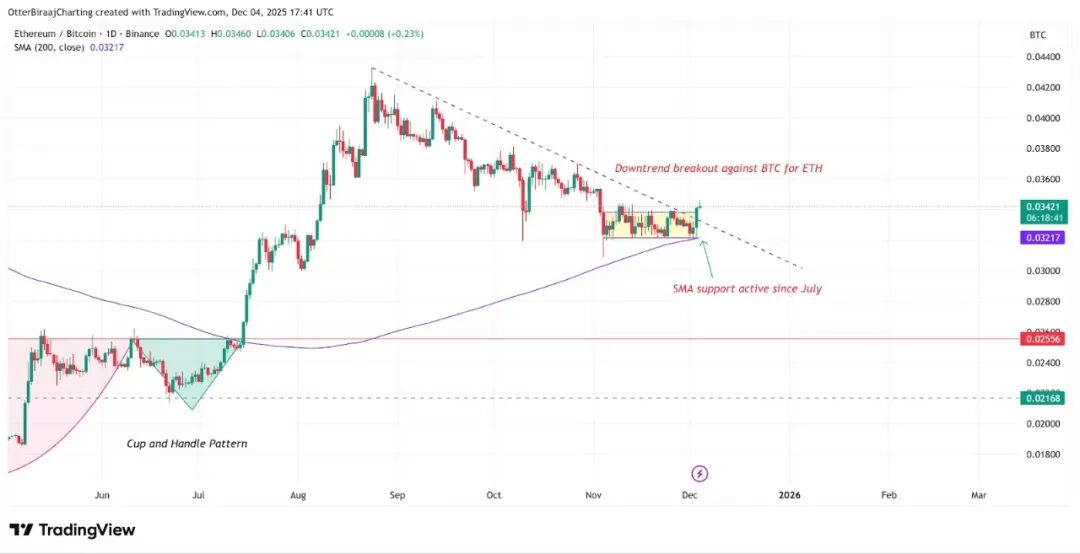 加密市场呈现核心资产轮动格局,以太坊近期走势显著强于比特币,Fusaka升级落地、机构资金回流等多重利好共振,推动ETH价格突破3200美元,较11月低点反弹超15%,ETH/BTC汇率同步走强,市场对其后续上涨20%至3800美元以上的预期升温,成为当前市场最受关注的核心议题。