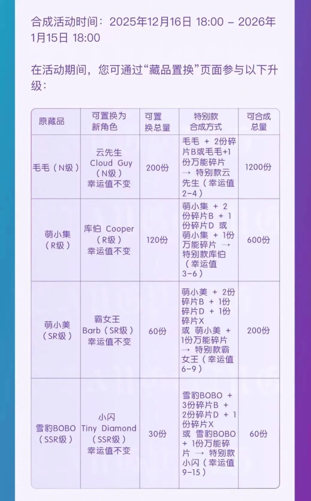 · 锁定流通总量:通过“按等级锁定流通”机制,杜绝随意增发,仅以置换、合成为核心手段推动IP迭代与用户筛选,确保藏品稀缺性。