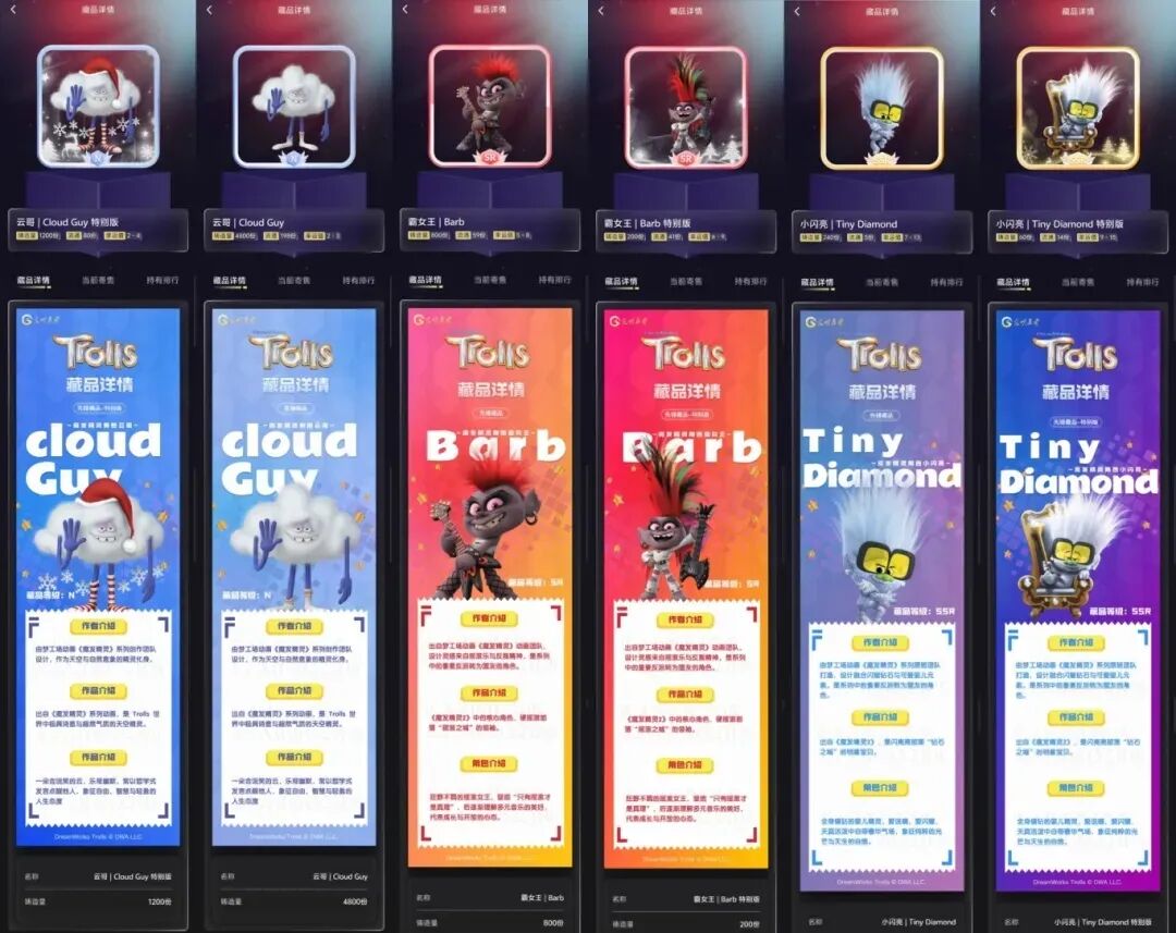 此次《魔发精灵》数字藏品系列,从角色形象到设计细节均源自官方原画图库,完美还原“快乐、勇敢、做自己”的精神内核。云先生、库伯、霸女王、小闪亮等经典角色悉数登场,按N/R/SR/SSR等级划分,每款藏品都拥有独一无二的纪念价值,成为粉丝收藏的不二之选。