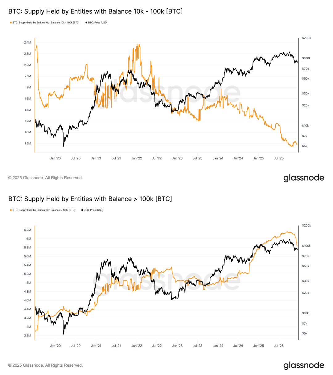 持有超过 10,000 个比特币的实体所持有的比特币供应量。来源:Glassnode