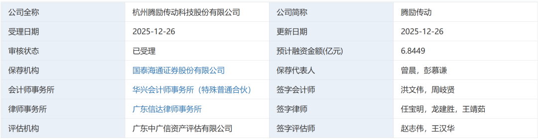 发行人主要从事汽车传动系统关键零配件及其总成的研发、生产和销售,零配件产品主要包括保持架、中间轴等关键零配件,传动系统总成包含等速驱动轴总成和传动轴总成等。。保荐机构国泰海通,会所华兴,律所广东信达。
