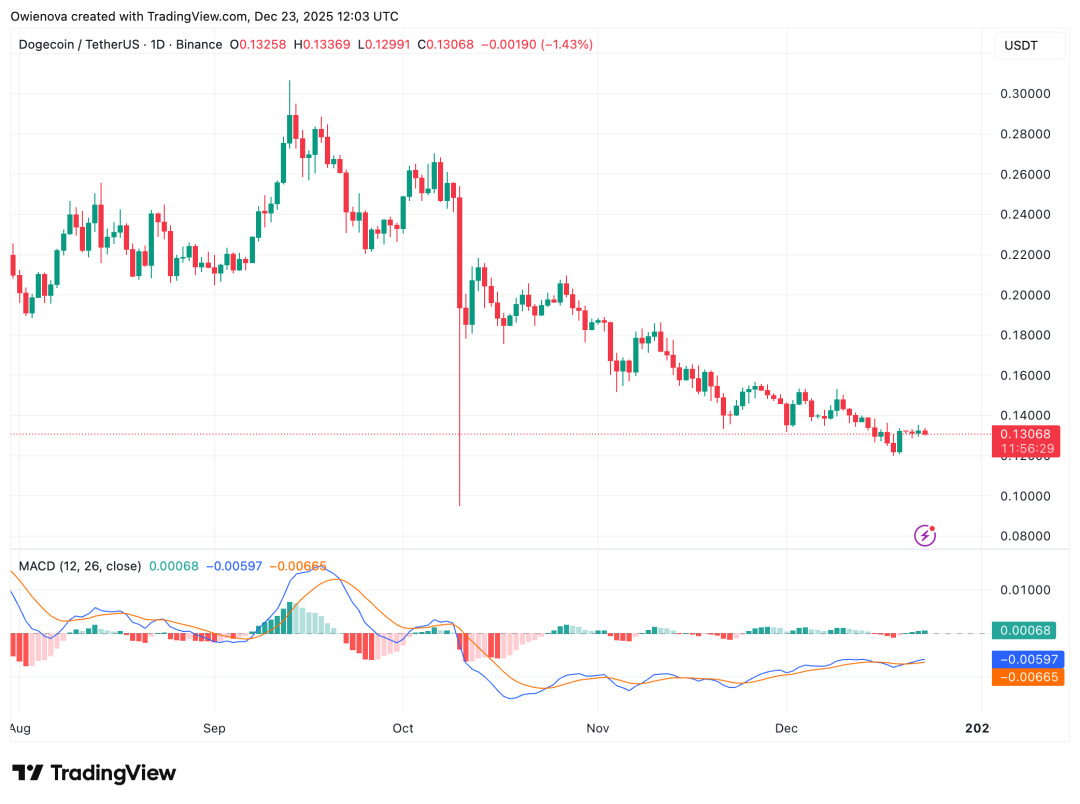 在最近的分析中,加密货币分析师 凯文 指出,0.138 美元是决定狗狗币能否真正走强的关键价位。如果 DOGE 能在 3 日线和周线级别上成功收复并站稳该水平,走势将发生实质性变化。