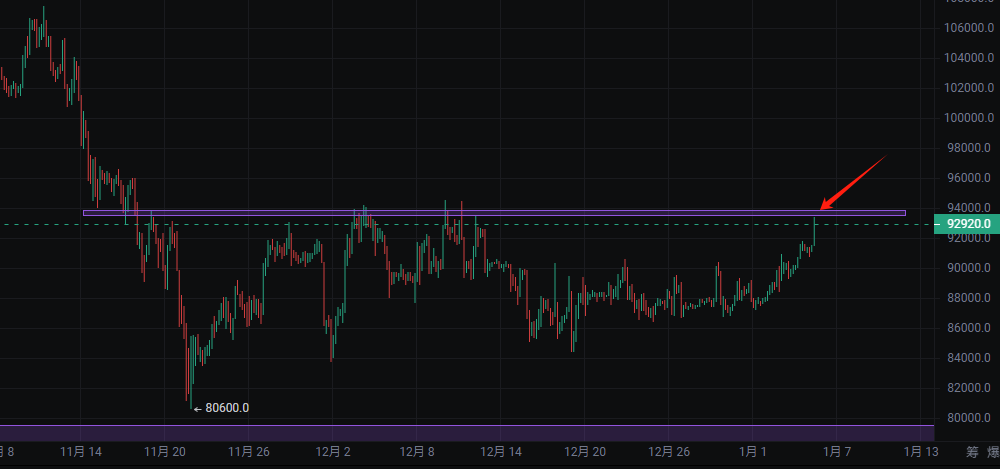 当前比特币到了93000附近,新的一年,行情终于开始往对的方向走了。从盘面来看,比特币的强势突破毫无疑问,情绪被重新点燃,结构被重新激活。这一刻,不需要过多怀疑,市场确实是在好起来。