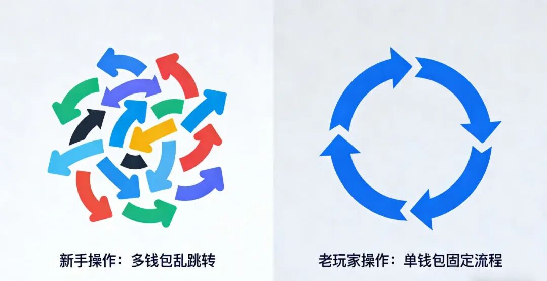 第二个区别:操作时 —— 新手 “瞎忙活”,老玩家 “精准躺”新手撸毛主打 “勤奋”,一天换 3 个钱包、在 10 个链上瞎转悠,每个项目只操作 1 次就跑,以为操作多机会多,结果被系统判定为 “机器人”,连白名单都进不了。老玩家主打 “精准 + 持久”,1 个钱包盯 3 个优质项目,每天花 10 分钟做固定操作(比如测试网 swap、质押续期),持续 7-10 天就静待空投。我用这招撸星尘空投,没熬夜没瞎忙,净赚 5000 美元,比天天刷操作的新手赚得多。