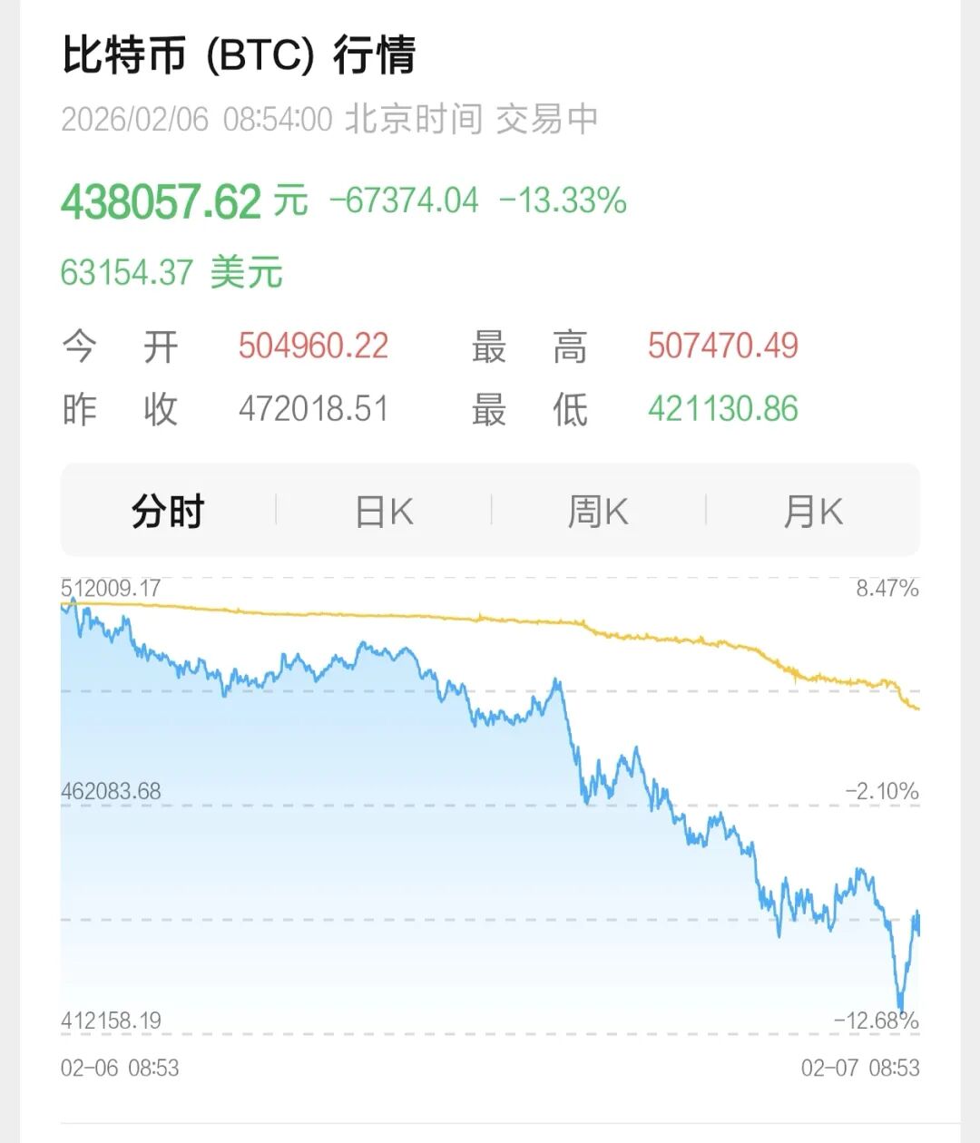近期加密货币市场迎来连续暴跌,在黄金与白银屡屡创出新高迎来全民关注的时候对比尤为明显。虽然短期后两者也迎来了调整,但终究不似大饼这般惨烈。从周线来看,调整已持续半年之久。北京时间2月6日8:54已经来到了6.31万美元/枚,再从最高点(12.6万美元/枚)来看,正好已经下跌了50%左右了。现在全球资本市场都是同气连枝,牵一发可能动全身,本着探索的精神让我们来探究一下比特币价格走势与全球主要股市的相关性与影响。